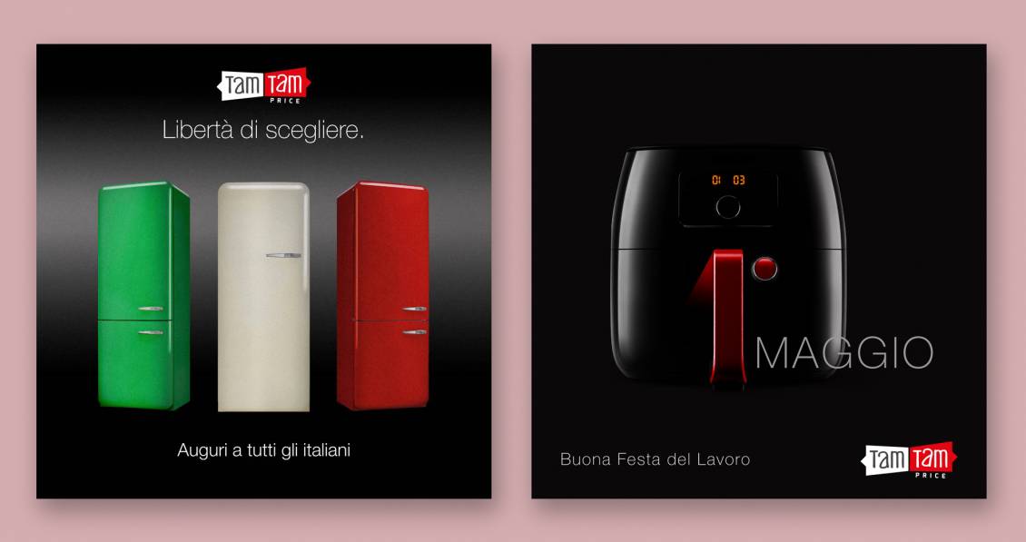 Creatività per comunicazioni varie su social network e newsletter per TamTam Price, un e-commerce che si occupa della vendita di arredamento e di grandi e piccoli elettrodomestici.