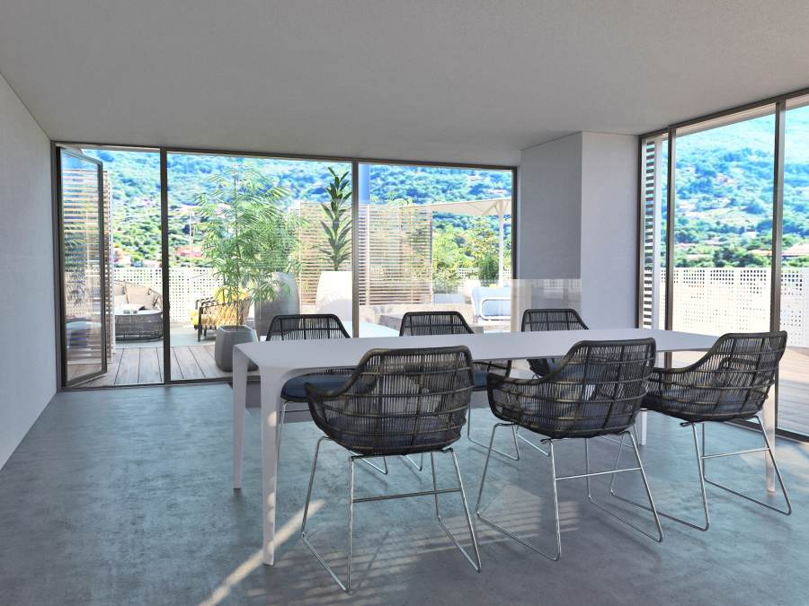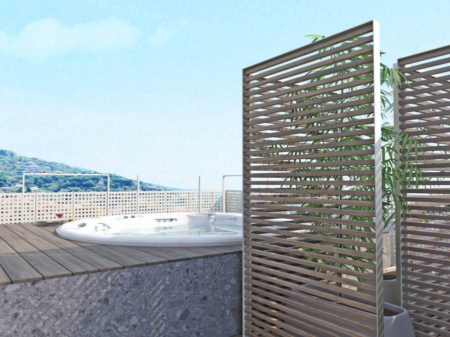 Attico con rooftop in centro ad Alassio, a pochi passi dal coloratissimo "muretto". Progettazione di diverse aree dedicate al relax e al sole. Zona conversazione, area pranzo, solarium con jacuzzi e doccia.