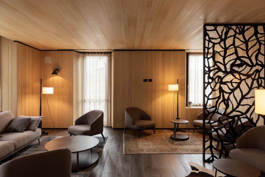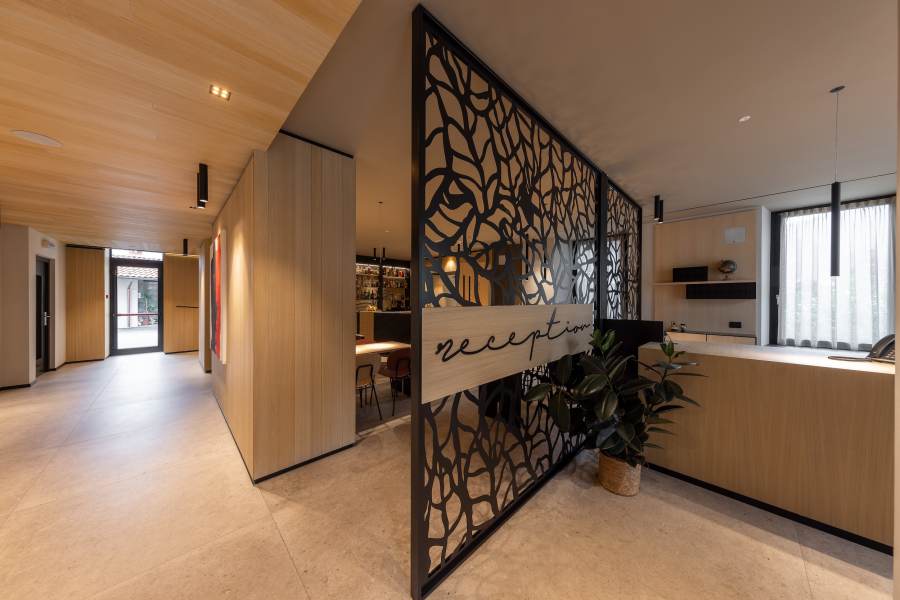 L’Hotel Libia di Fino del Monte, fondato nel 1912 e premiato nel 2024 come struttura storica di qualità, ha avviato un ampio rinnovo degli ambienti grazie alla volontà della proprietaria Pamela. Sono stati ristrutturati circa 1.200 mq tra piano terra, interrato e giardino, creando continuità visiva con rivestimenti in rovere chiaro e pavimenti in grès effetto pietra.