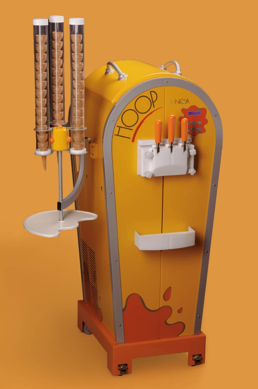 Macchina per gelato espresso. Linea e colori guardano un mercato essenzialmente estivo, giovane e vacanziero.