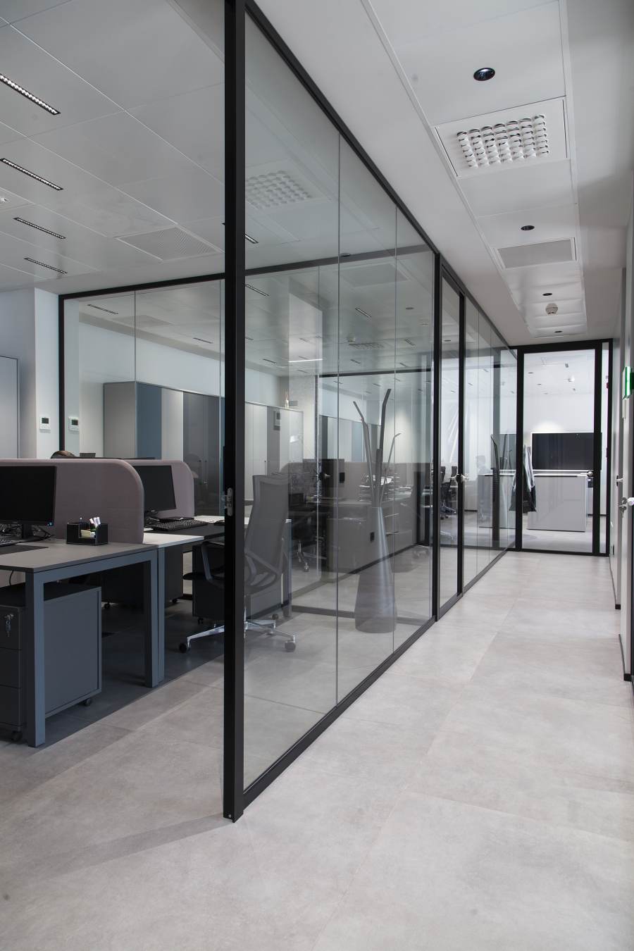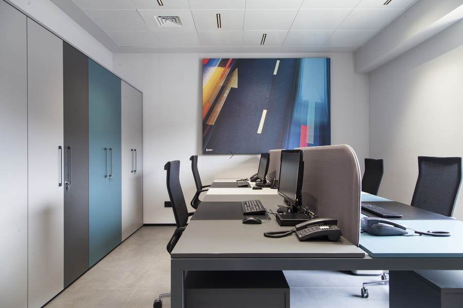 Il restyling della sede di Lopigom non ha coinvolto unicamente la struttura esterna, ma anche la progettazione interna per un totale di 800mq di uffici operativi e direzionali, un progetto articolato e complesso.