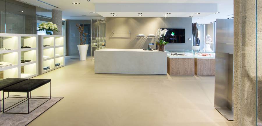 Volumi creati da grandi quinte in vetro e materiali minimali quali il cemento, il legno grezzo e l'acciaio, sono alla base del progetto. Ogni elemento d'arredo, ogni dettaglio è stato pensato e disegnato appositamente per rendere il tutto ordinato e logico.