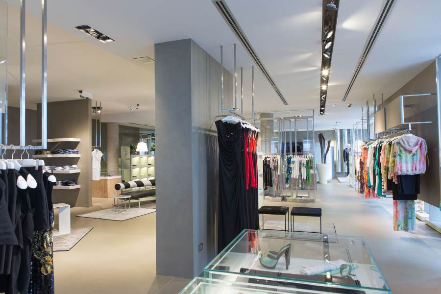 Progetto di un negozio di abbigliamento sviluppato su due piani per un totale di 700 mq.