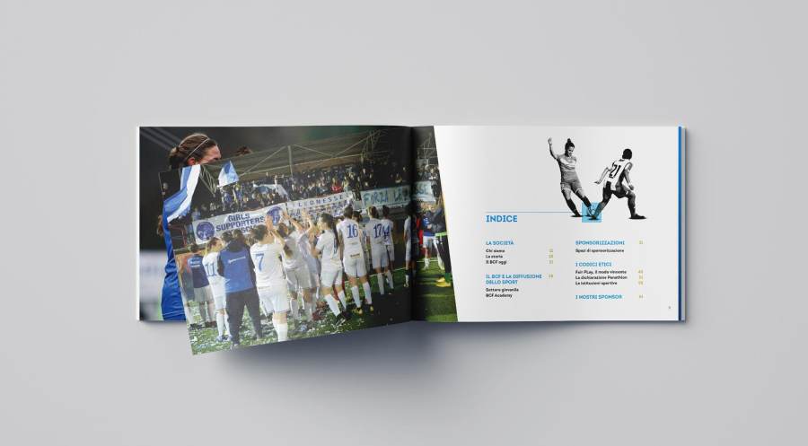 La società del Brescia Calcio Femminile ci ha commissionato una brochure per il campionato 2020 da distribuire alla conferenza stampa e agli sponsor.