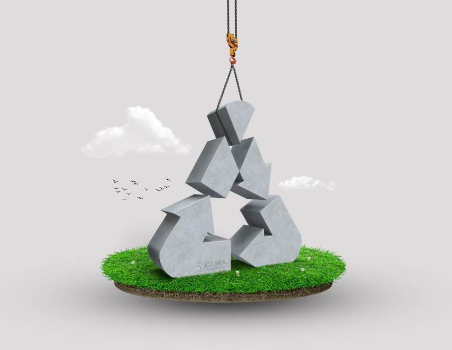 Il risultato è stato quello di utilizzare il simbolo universalmente conosciuto del riciclo trasformandolo in una costruzione in calcestruzzo e che si compone davanti all'osservatore.