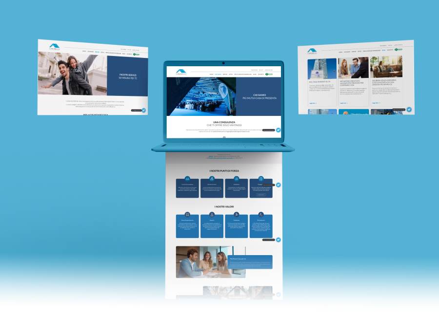 Abbiamo affrontato il progetto seguendo le linee guida del Gruppo, con l’obiettivo di realizzare un sito per Più Mutui Casa perfettamente personalizzato sui contenuti della società, ma che fin dal primo accesso trasmettesse immediatamente lo stile e l’identità riconoscibile del Gruppo.